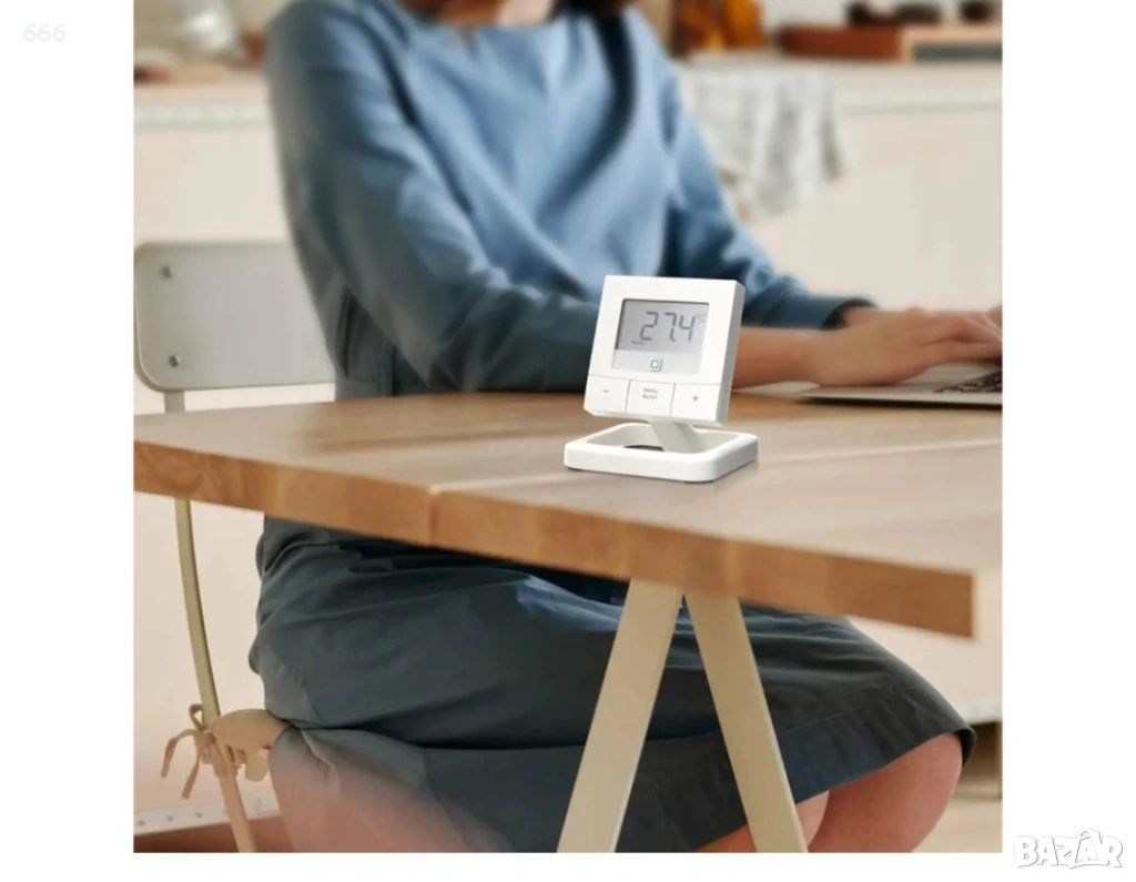 Гъвкаво поставяне: настолна стойка за държач. Термостатът Homematic IP може да се постави на масата, лесен за наблюдение и употреба.