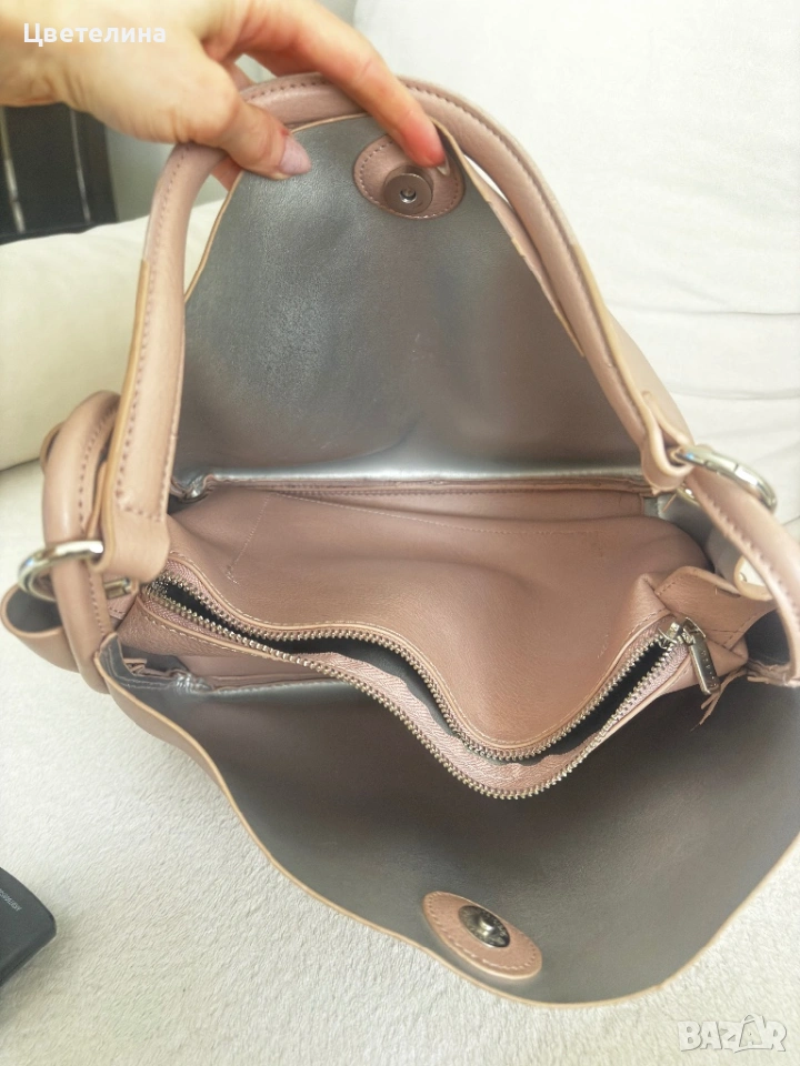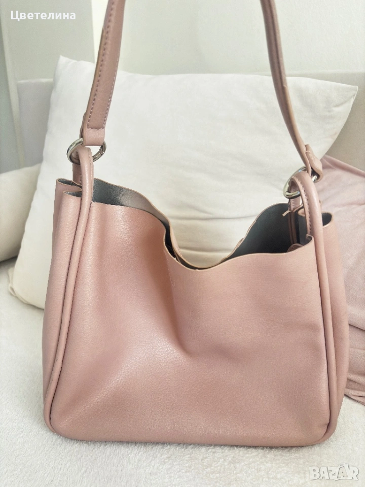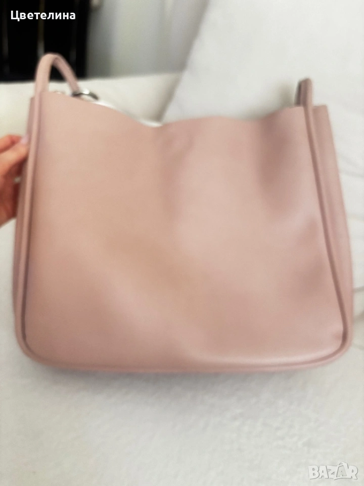 Чантата е носена броени пъти . Много нежен розов цвят. Ширина 30 см , височина 25 см