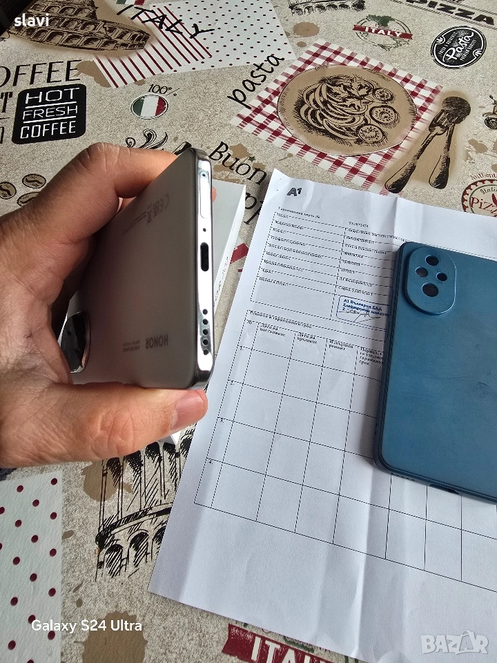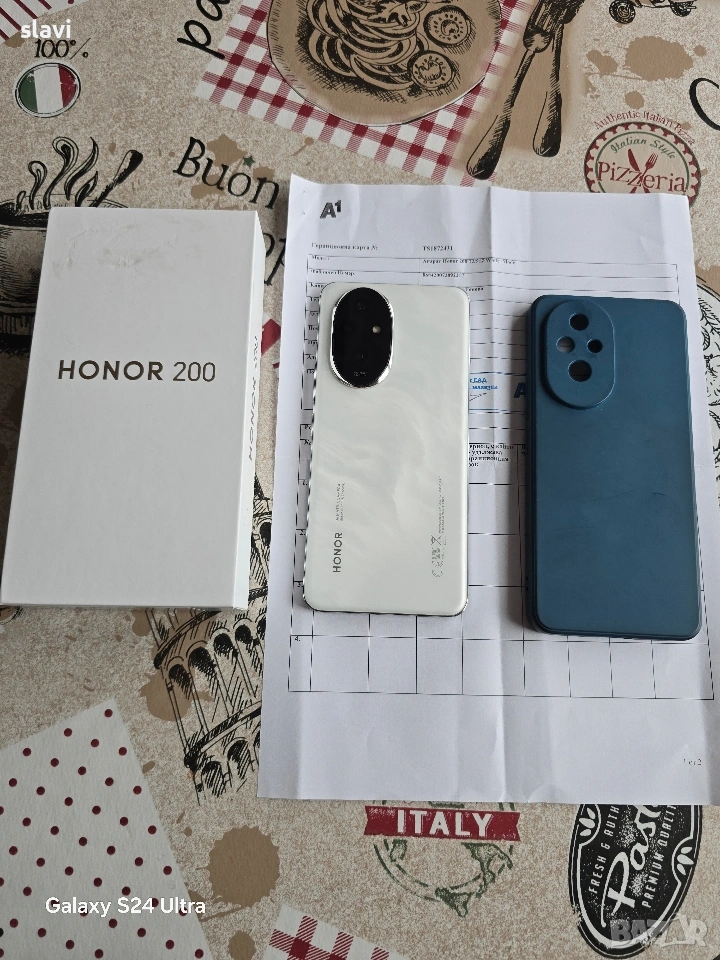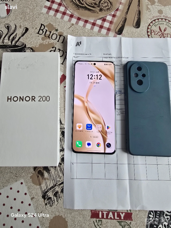 Honor 200 12/256GB.Телефона е в перфектно състояние,като нов с оставаща гаранция към А1 до 09.2026г.Пълен комплект,работи уникално и снима перфектно.Батерията издържа 2 дни с нормално ползване на Интернет.Това е един от малкото телефони от средният клас който си заслужава и то много.Цена 230€.