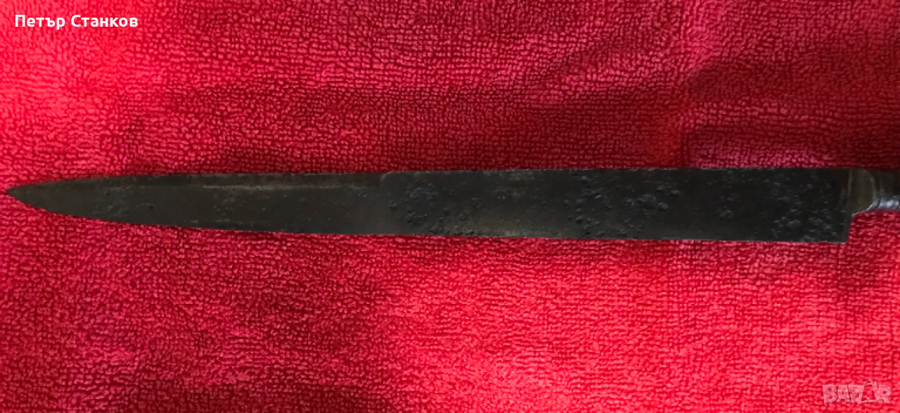 Османски боен нож за промушване.Има елман (заточване от горната страна в предната част).Дълъг 35.5см, широк 2.3см,дебелина 6мм.Минимални и труднозабележими реставрации по острието.Чирените са в прекрасно състояние.Цялостно консервиран с професионален препарат Ренесанс Вакс.