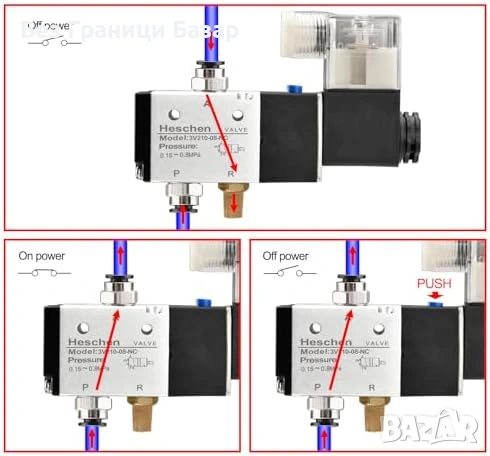 Модел клапан: 3V210-08, 3/2 път (3 порта / 2 позиции)