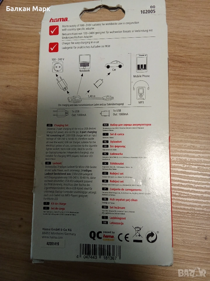 Продавам чисто нов универсален комплект за зареждане на марката Hama, модел "Picco". Продуктът е внос от Германия, част от палетирана стока с гарантиран произход и качество.