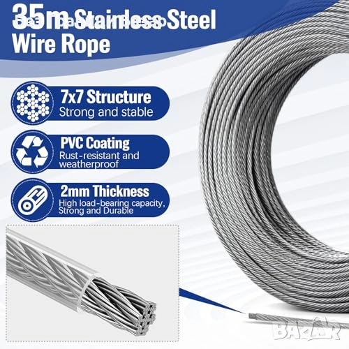 Здраво решение за градина и DIY: стоманено въже 2 мм за надеждно окачване и водене
