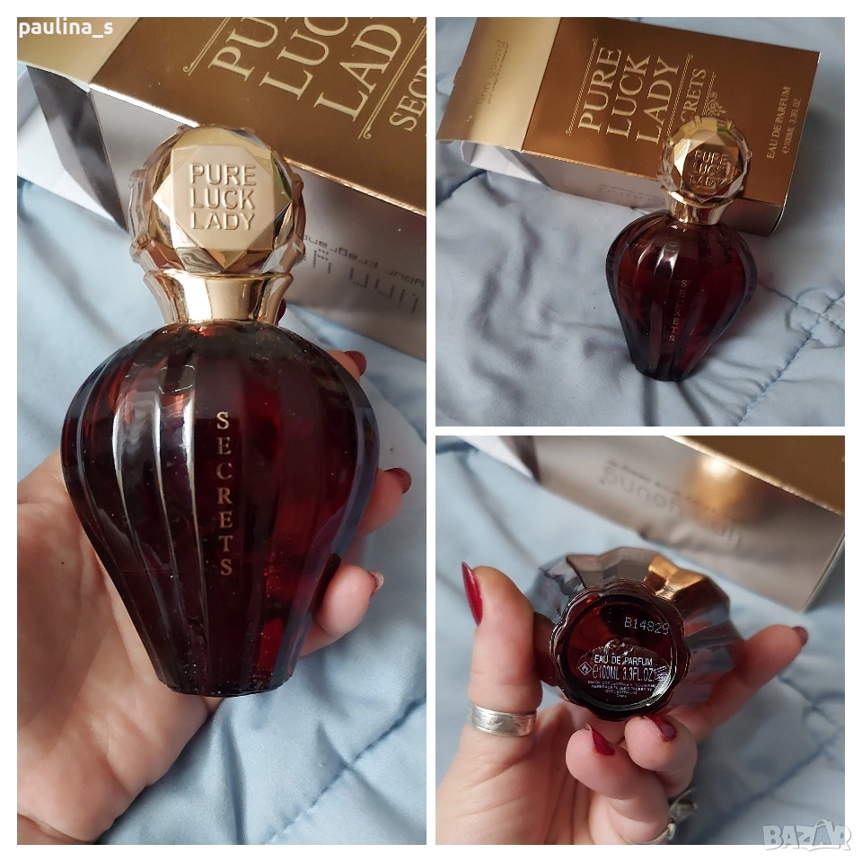 4️⃣. Колаж / Дамски парфюм "Pure Lady Sectets" / 100ml EDP. Цената е крайна, без пазарлъци 20 евро. Абсолютно много рядка находка на Lynn Young, наподобява на Лейди Милиън Прайв ѝ Черна Орхидея на Том Форд. Нов, съхраняван е на тъмно и в кутията, подходящ е за подарък или повод. Много траен!