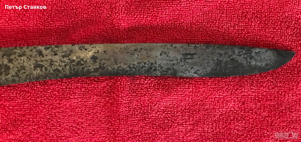 Много стар екземпляр, възможно преди 19 век.По острието има леки реставрации.Чирени от биволски рог, новодел.Консервиран с професионален препарат Ренесанс Вакс.Дължина 36 см,широк 3 см. в основата и 5 мм. дебел.