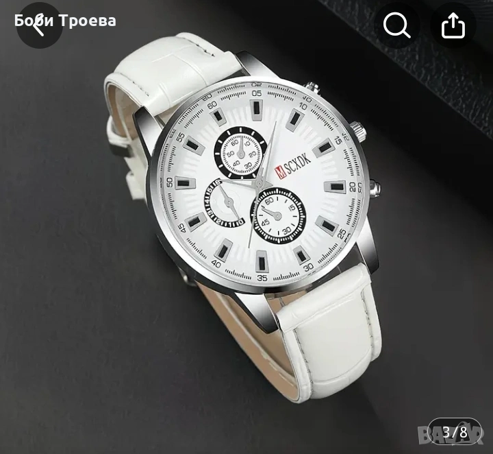 Мъжки Луксозен Моден Кръгъл Kварцов Часовник с бяла каишка , снимка 1 - Мъжки - 53572477 Мъжки Луксозен Моден Кръгъл Kварцов Часовник с бяла каишка , снимка 2 - Мъжки - 53572477 Мъжки Луксозен Моден Кръгъл Kварцов Часовник с бяла каишка , снимка 3 - Мъжки - 53572477 Мъжки Луксозен Моден Кръгъл Kварцов Часовник с бяла каишка , снимка 4 - Мъжки - 53572477 1/4