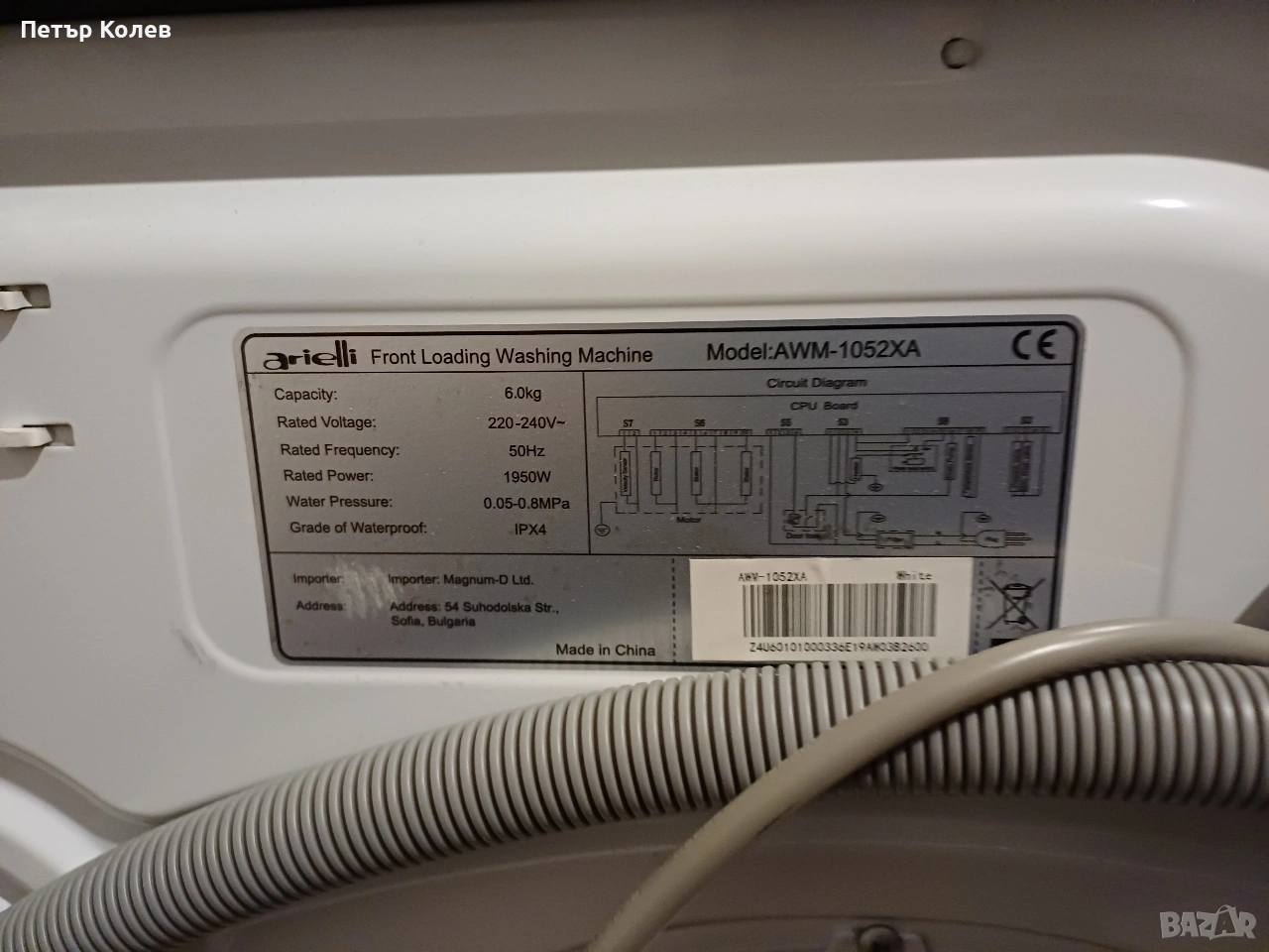 пералня Arielli с повреда не загрява водата за части или за отремонтиране