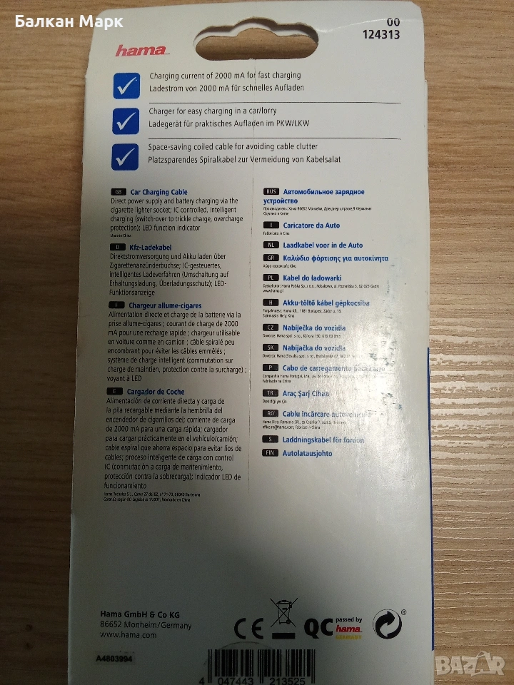 Описание: Продавам чисто ново зарядно за автомобил на немската марка Hama. Продуктът е част от разнообразна палетирана стока, директен внос от Германия, което гарантира високо качество на изработка.