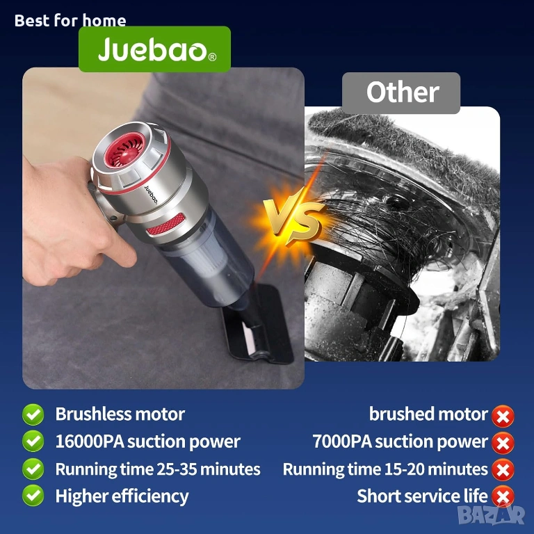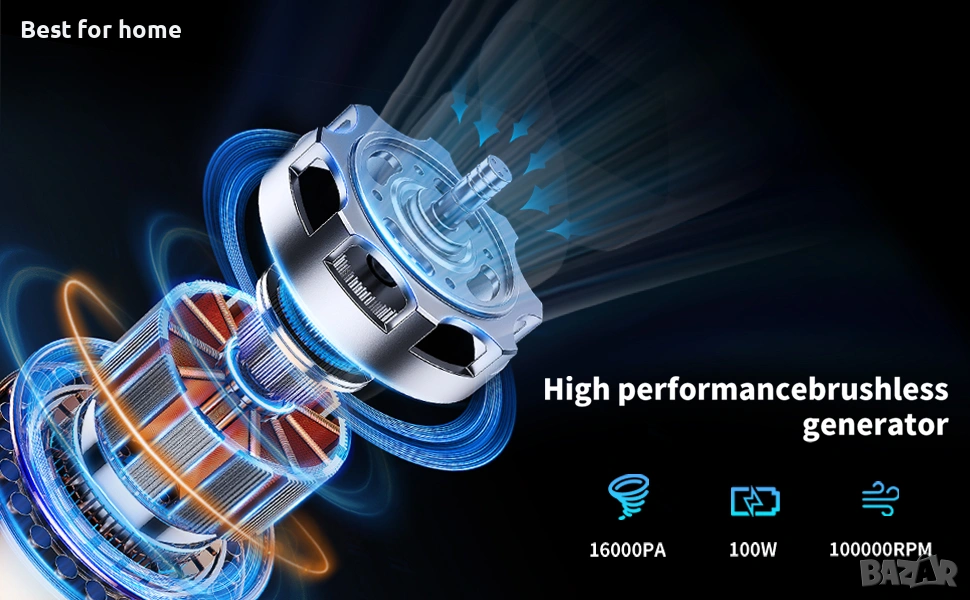 16000PA Най-силна всмукателна мощност: Нашата безжична прахосмукачка е оборудвана с мощен високоскоростен мотор, който може да осигури супер всмукателна мощност от 16000PA. Ръчните прахосмукачки могат да премахнат фини прахчета и частици дълбоко във вашия диван и матрак.