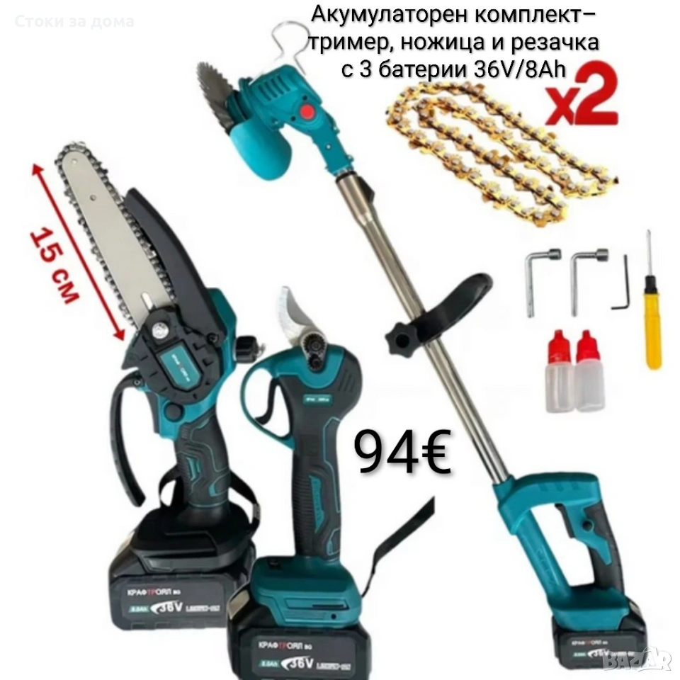 Акумулаторен комплект – тример, ножица и резачка с 3 батерии 36V/8Ah
