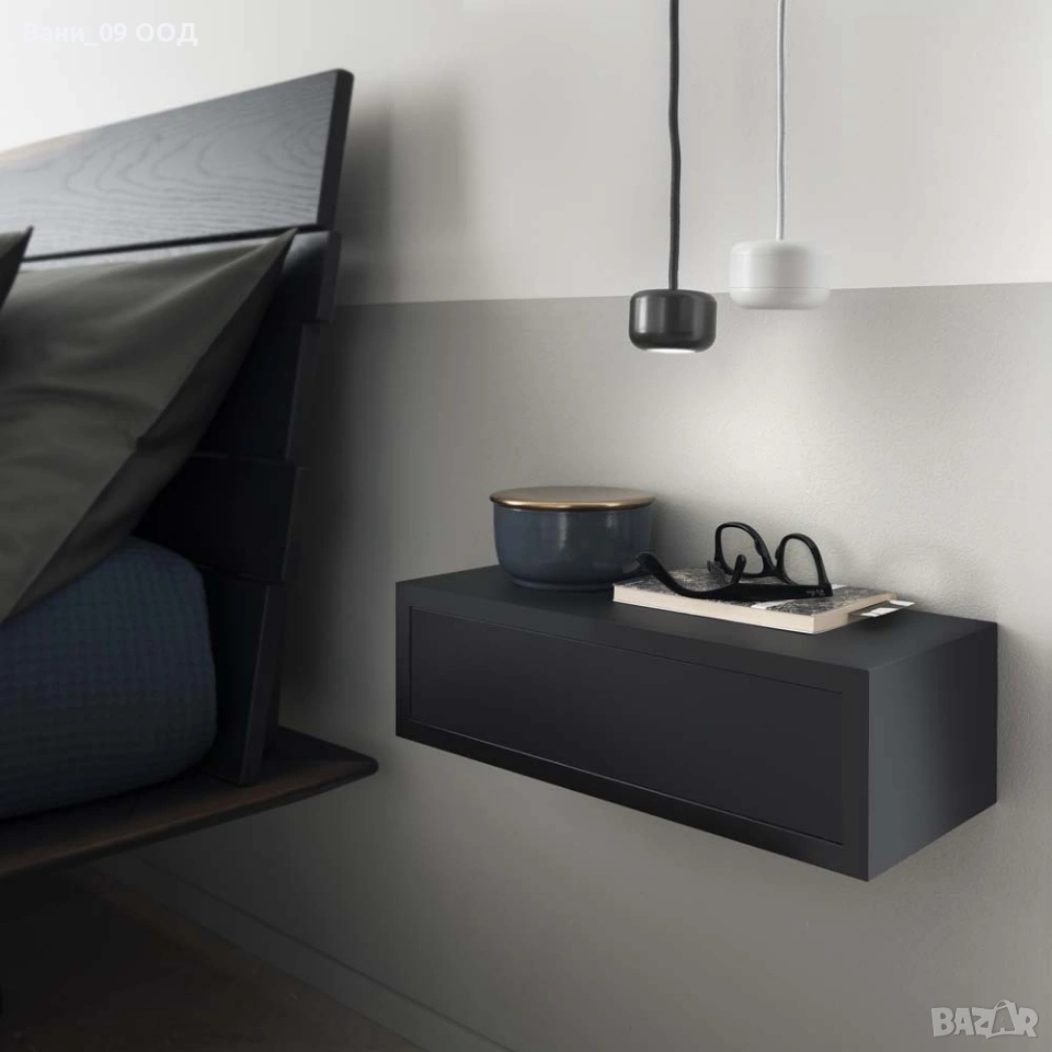 Стилна стенна етажерка с 1 чекмедже в 4 цвята- черно, алпийски дъб, дъб артисан или бяло