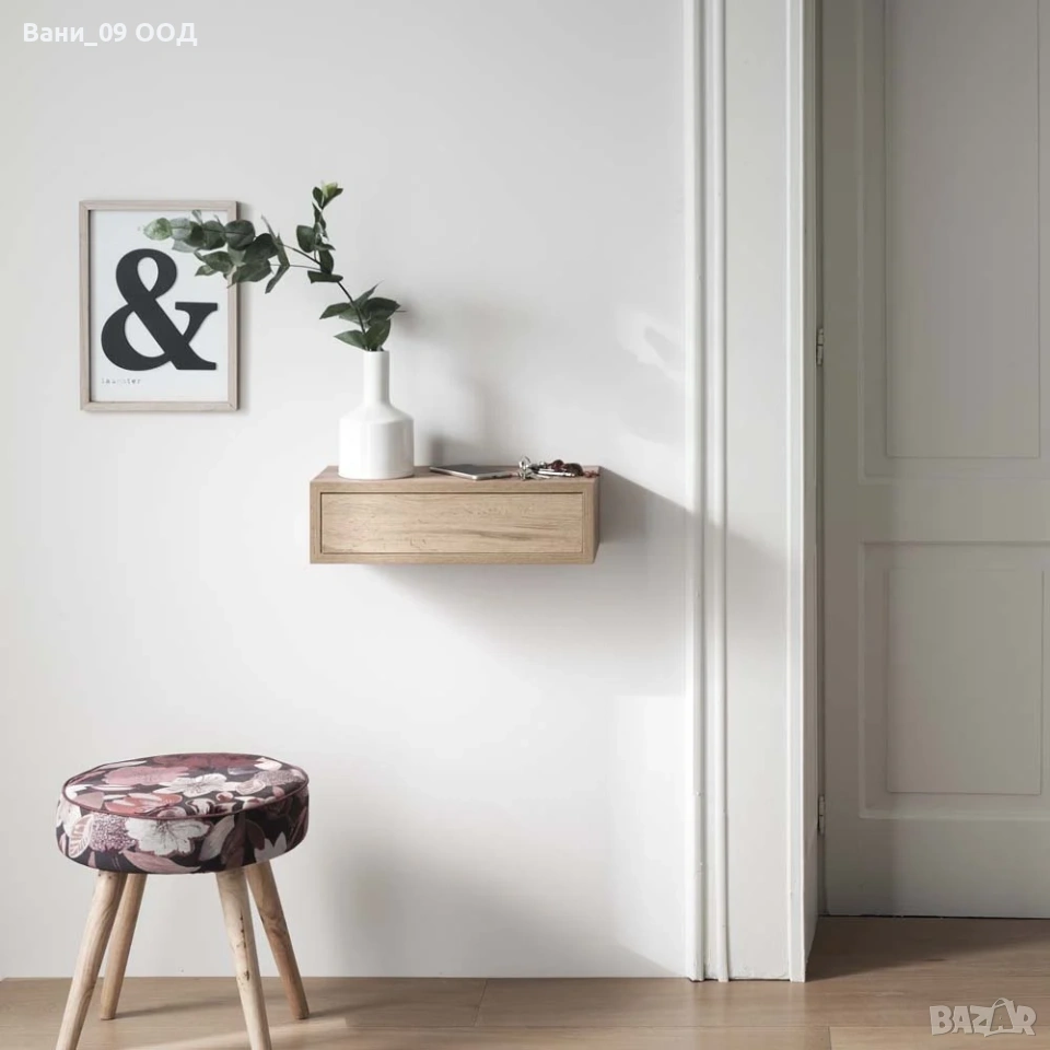 Етажерката е стилно и функционално решение за модерния дом. С компактни размери и изчистен дизайн, тя съчетава практичност и елегантност, като предлага дискретно място за съхранение. Подходяща е както за спалня, така и за коридор или дневна, където може да се използва като нощно шкафче, малък рафт или стилен акцент на стената.