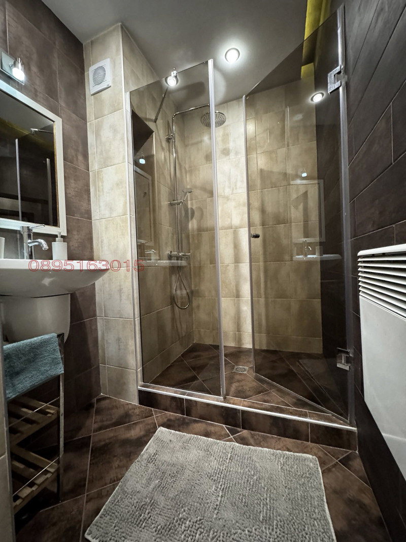 баня /с пералня и сушилня/,отделна тоалетна и две тераси, от които едната е остъклена с висок клас пвц дограма .Изложение изток- запад. На таваните във всички помещения е монтирана 10см каменна вата и гипсокартон с вградени осветителни тела .
