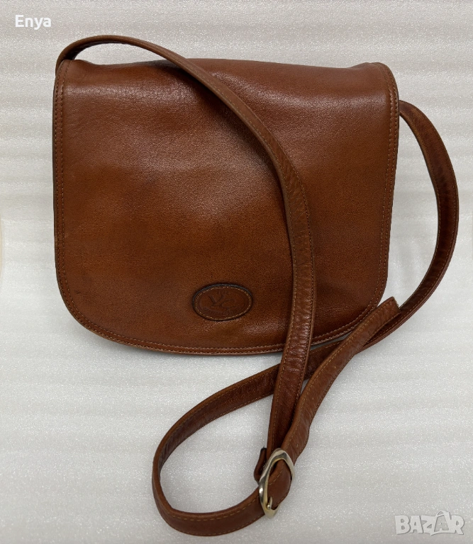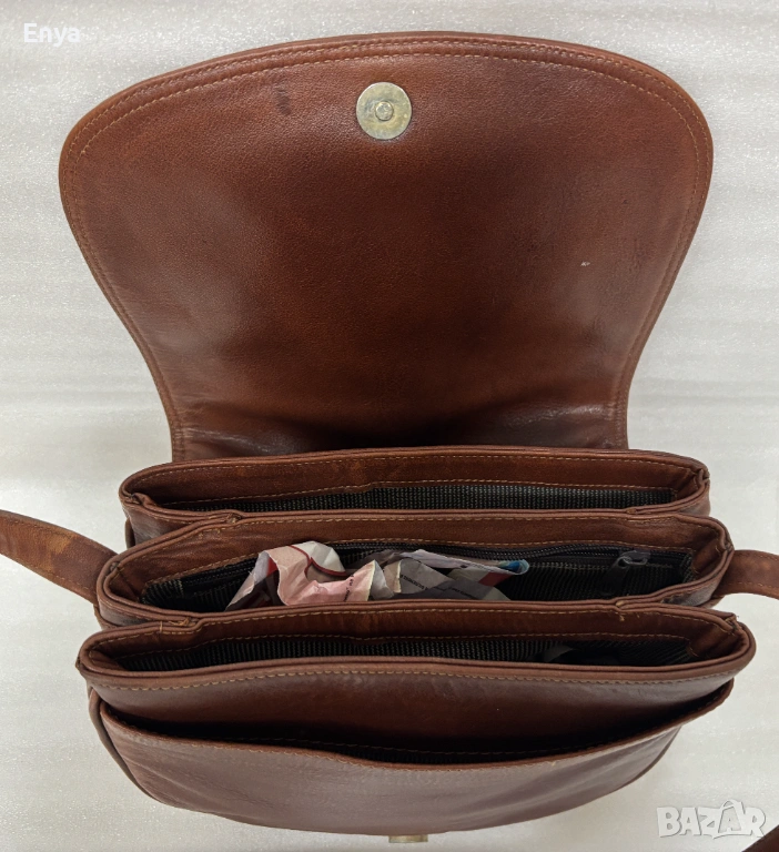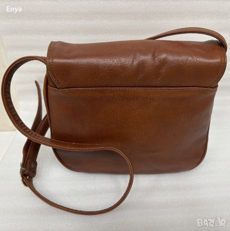 Дамска чанта за през рамо от естествена кожа - цвят брик → Обява 53572935