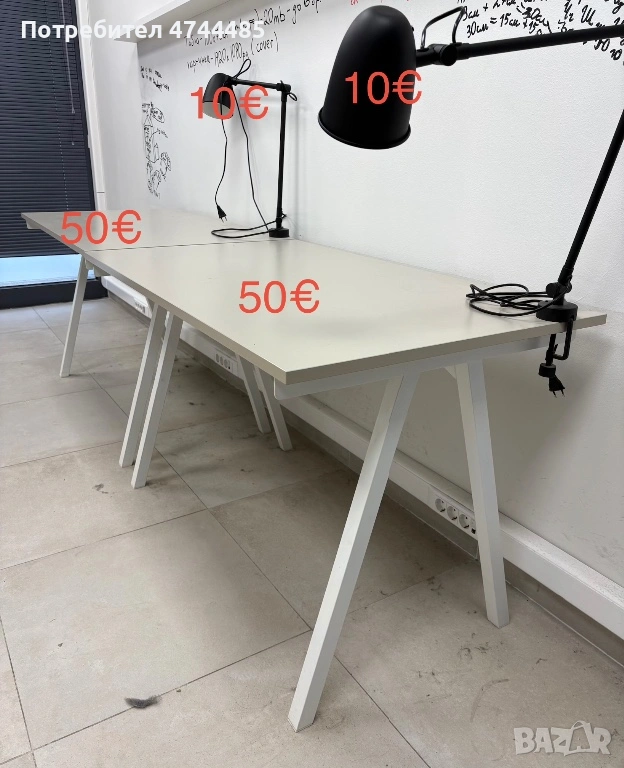 Бюра 2бр -плот и крака - IKEA - TROTTEN - 120/70, отлично състояние; метална рамка — 50€ на бюро