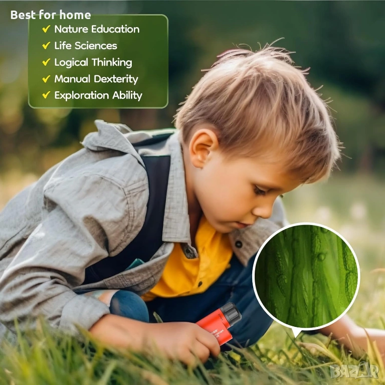 Перфектен подарък: Джобният микроскоп е идеален за широк спектър от хобита. Той е чудесен микроскоп за начинаещи, студенти и любители. Чрез мини микроскопа децата могат да изследват микроскопичния свят на съществата или да излизат навън, за да подобрят способността си да мислят и наблюдават.