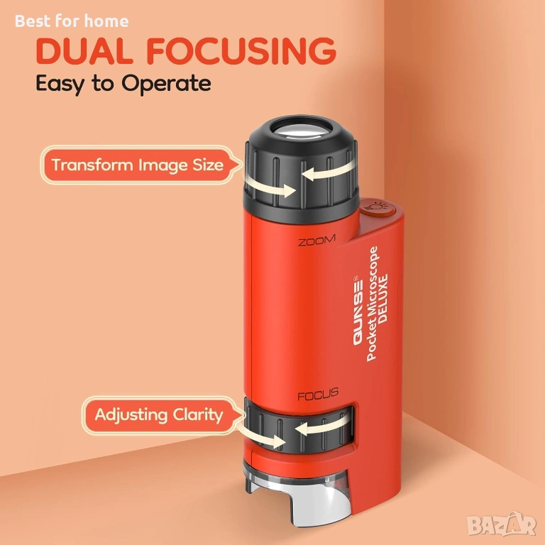 Лек материал и уникален ярък оранжев цвят: Малкият корпус на микроскопа е изработен от супер лека и висококачествена ABS пластмаса. Джобният микроскоп тежи само 30 грама, което е супер леко. Мини микроскопът е лесен за употреба от начинаещи. Уникалният оранжев цвят привлича погледите ви, а компактният размер може лесно да се постави в джоб!