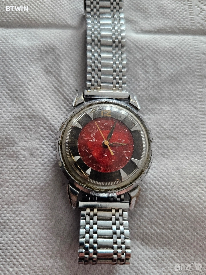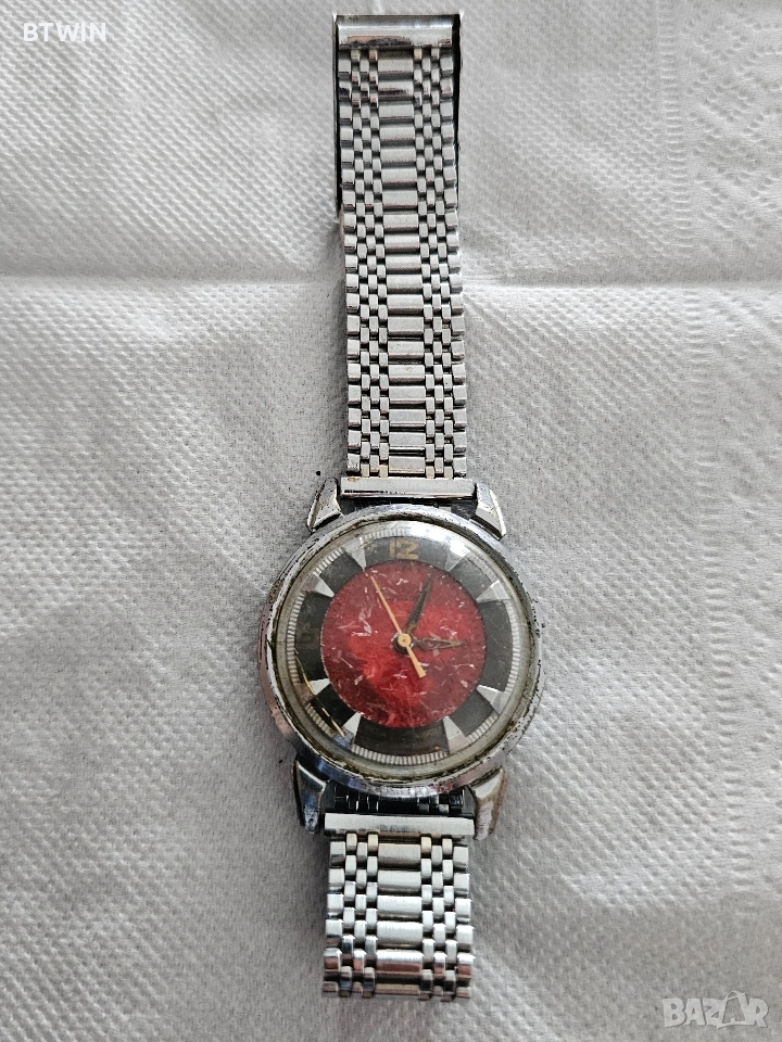 Винтидж механичен часовник с червен циферблат – неизвестна марка ! , снимка 1 - Мъжки - 53573066 Винтидж механичен часовник с червен циферблат – неизвестна марка ! , снимка 2 - Мъжки - 53573066 Винтидж механичен часовник с червен циферблат – неизвестна марка ! , снимка 3 - Мъжки - 53573066 Винтидж механичен часовник с червен циферблат – неизвестна марка ! , снимка 4 - Мъжки - 53573066 1/4