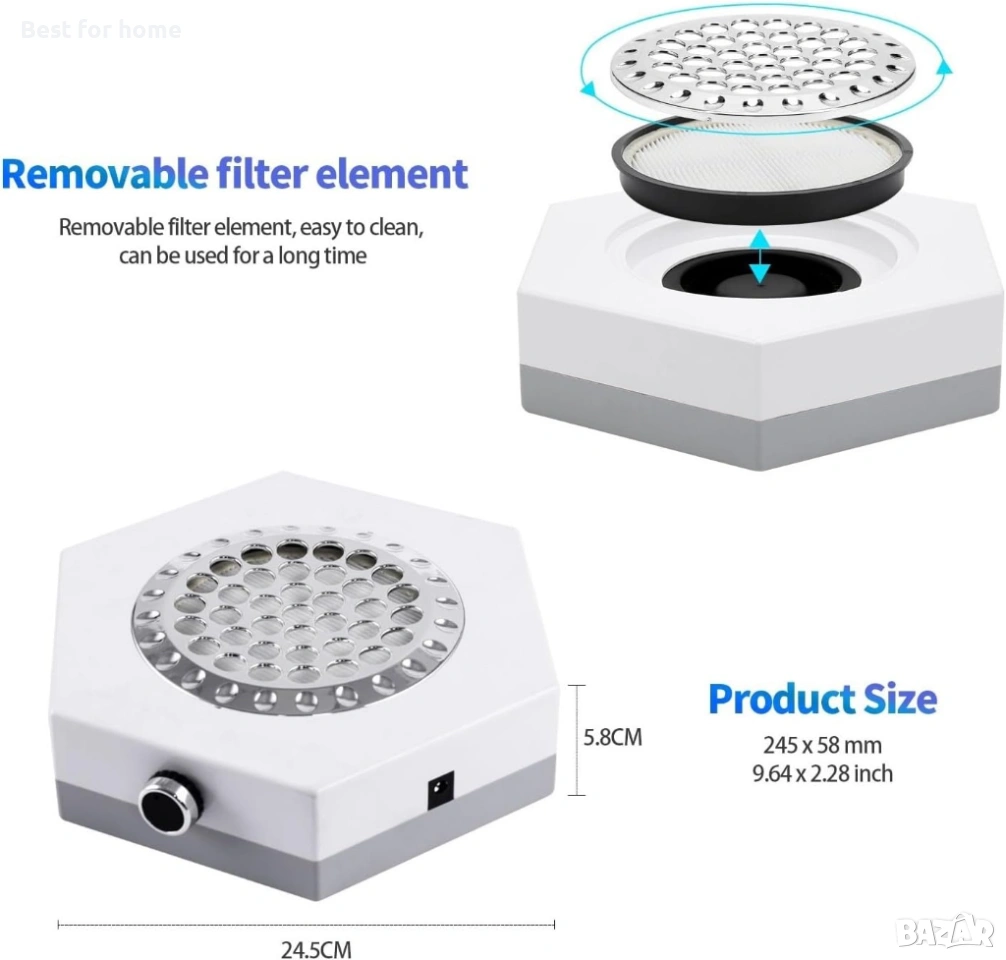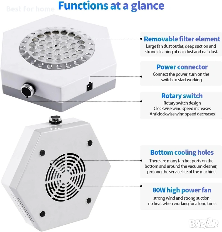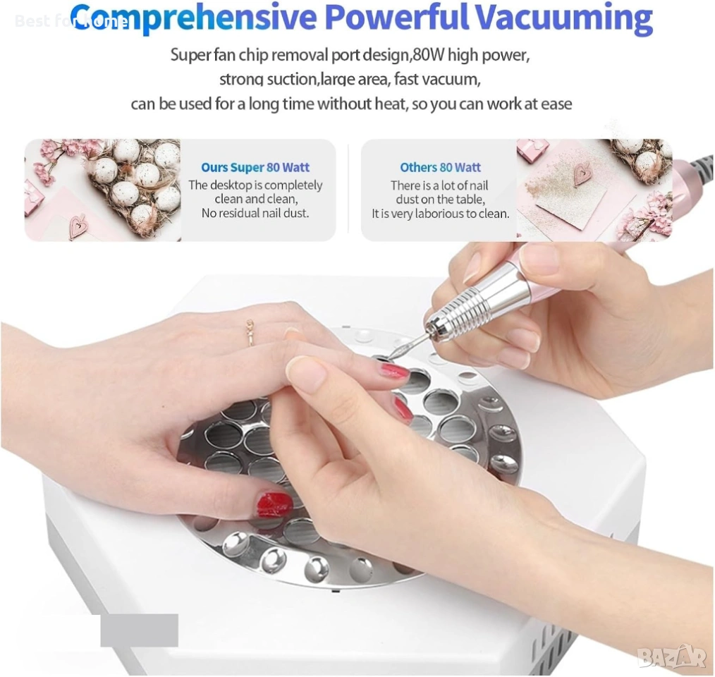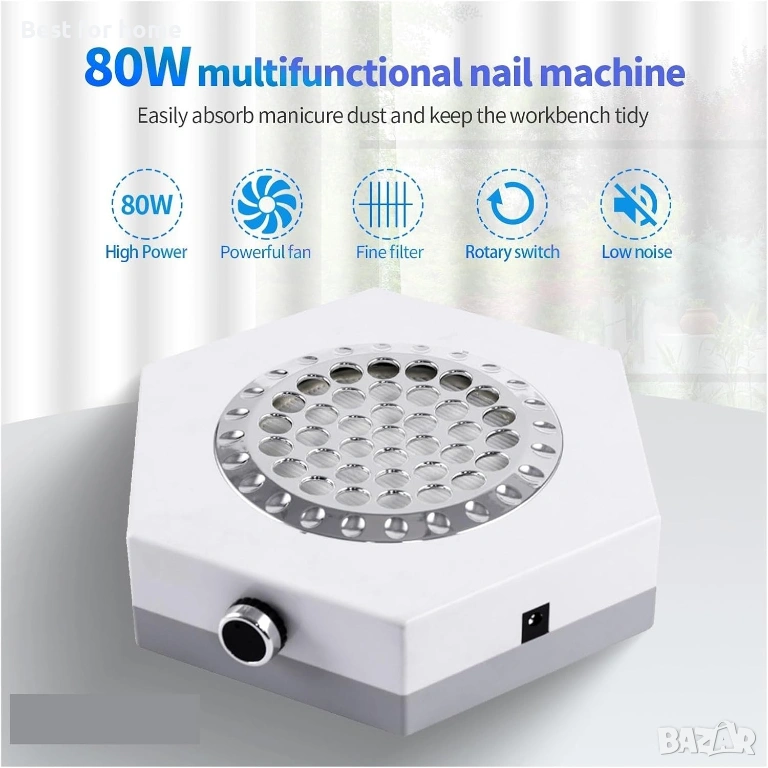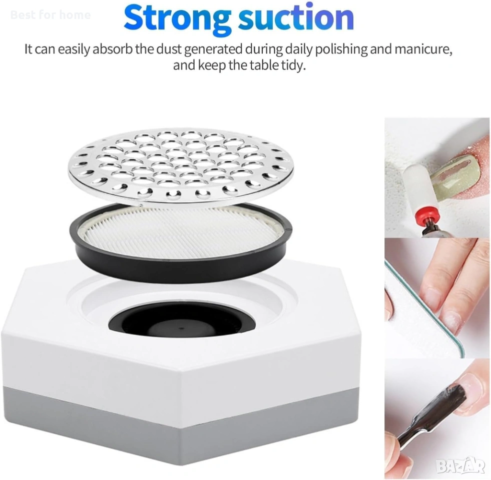 Прахоуловител за нокти, 80W мощен прахоуловител за нокти, вентилатор, прахосмукачка