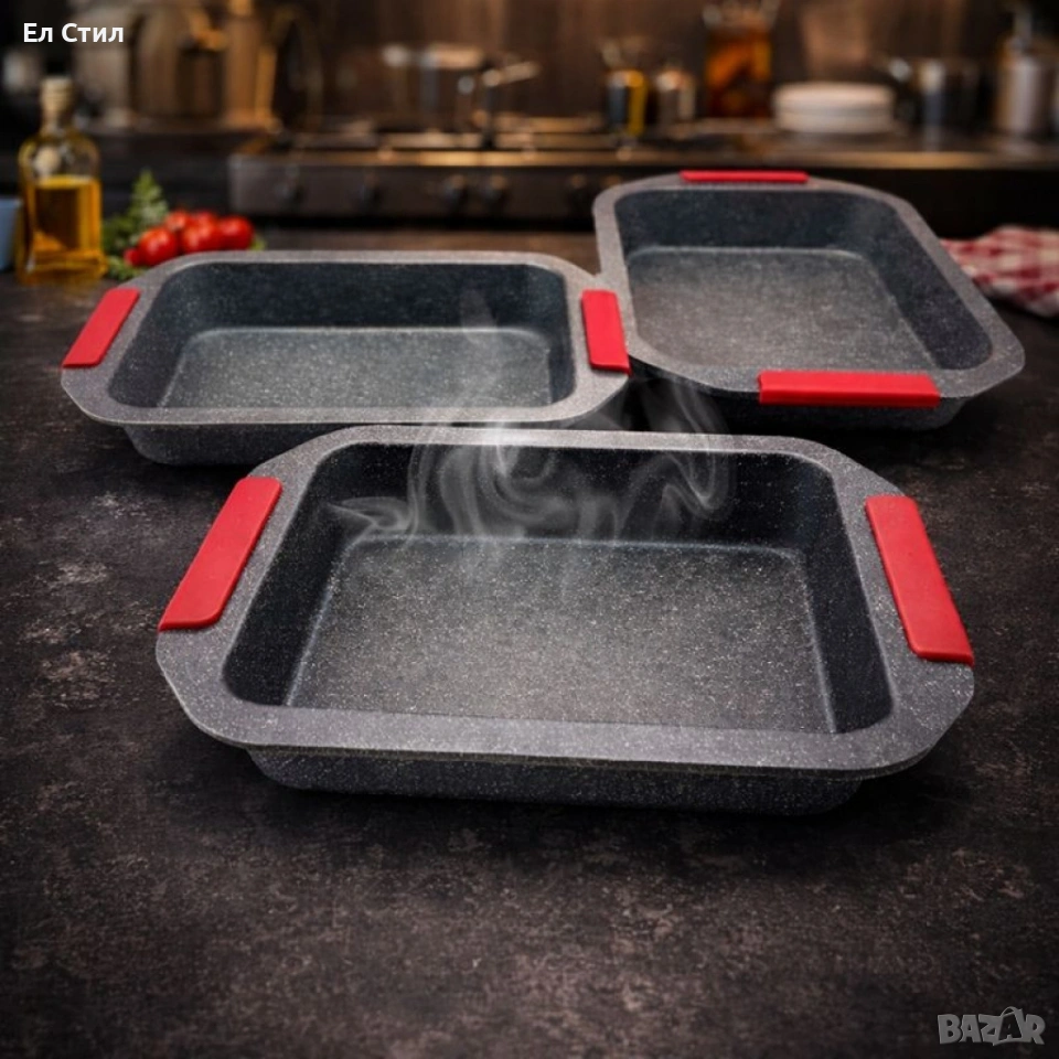 Комплект 3 тави за печене Cheffinger с мраморно покритие и силиконови дръжки