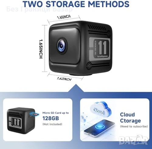 Запис в облак или microSD (не е включена) до 128GB + цикличен запис