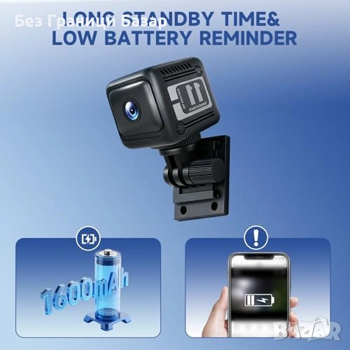 Нови Мини шпионска камера 4K, 10ч батерия, детекция движение, двупосочно аудио