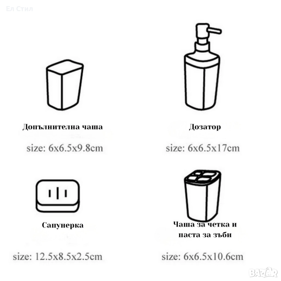 Комплект: 4 части – дозатор, чаша за четки, сапунена чиния, органайзер;