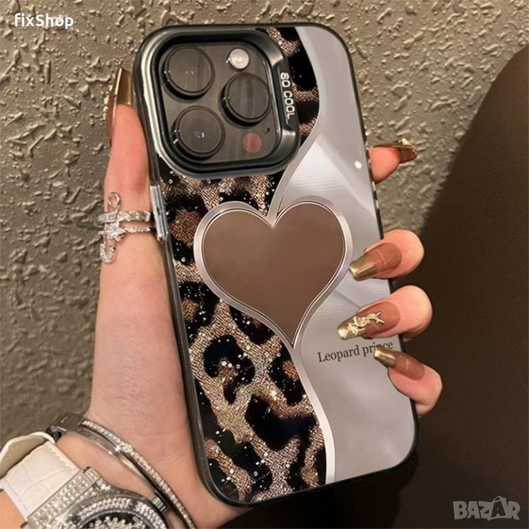 Продавам чисто нов калъф за iPhone 17 с модерен и стилен дамски дизайн. Калъфът комбинира сърце, леопардов принт и металически елементи, което го прави идеален аксесоар за хора, които обичат по-ефектна визия.