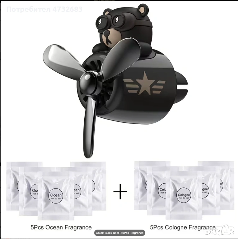 Ароматизатор за Кола – Cartoon Pilot Fan (Black Bear) + 10 Аромата