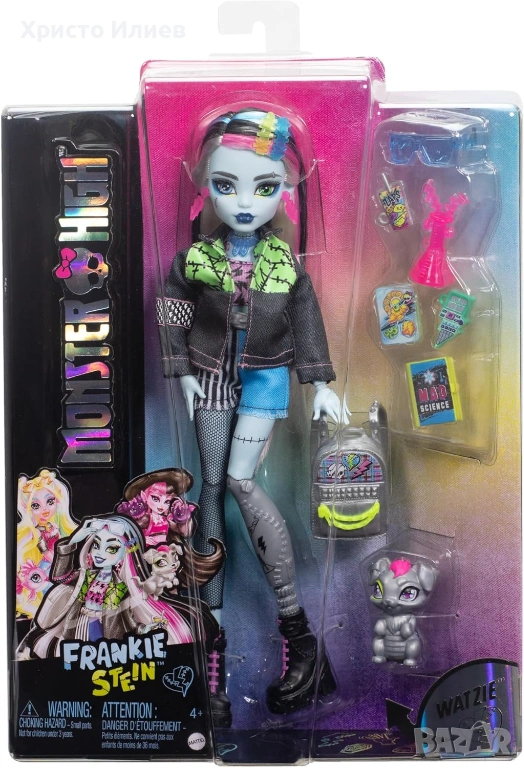 Невероятните герои от Monster High са отново тук, готови за чудовищно забавни игри. Франки Щайн идва със своя домашен любимец, разнообразие от аксесоари и няма търпение да сподели вълнуващи игри с малчуганите.