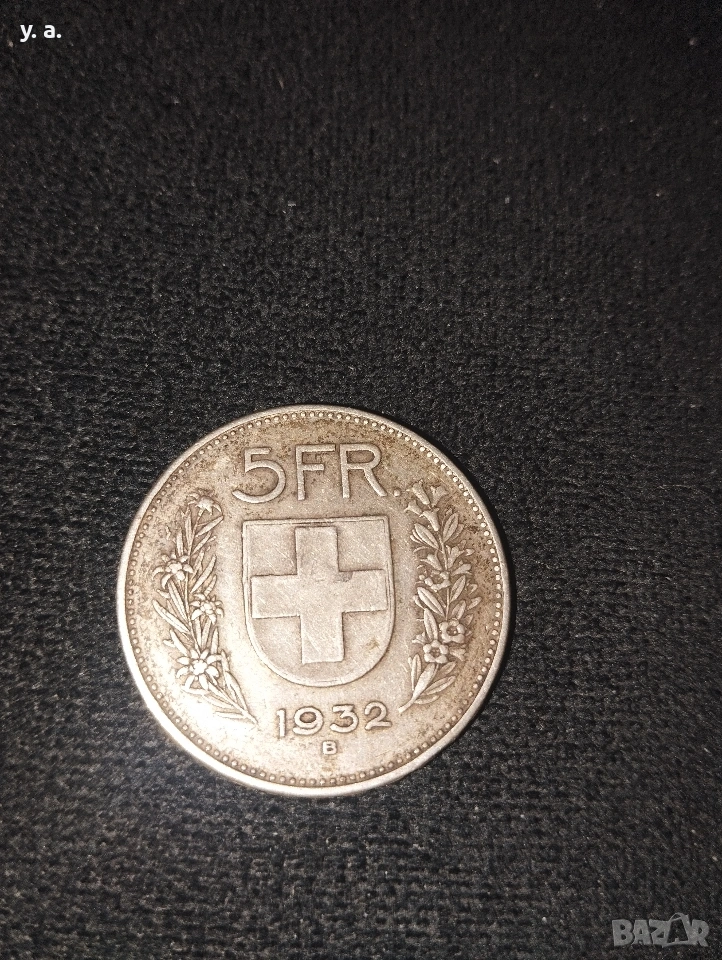 Пет Швейцарски франка, перфектно състояние, 1932 година!