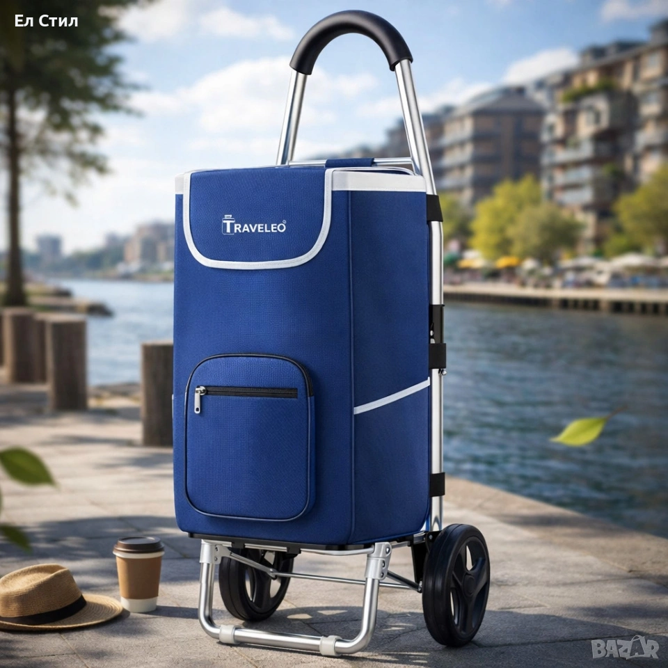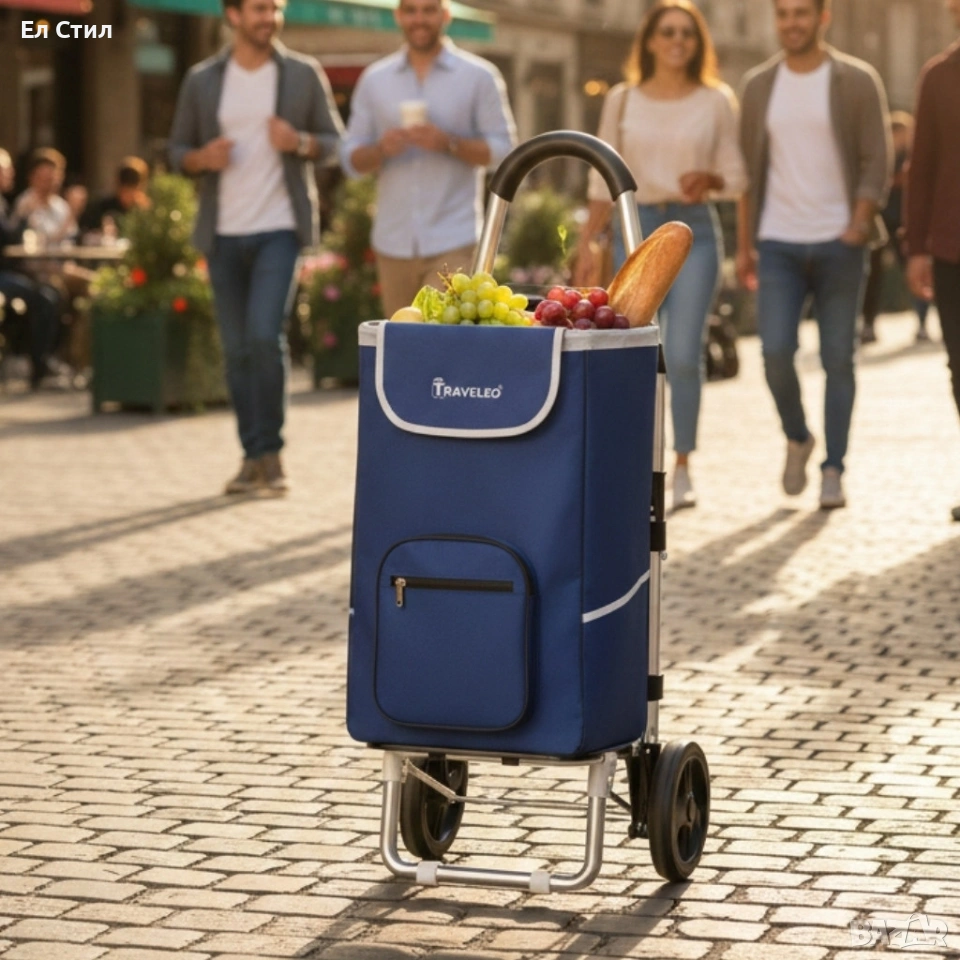 Сгъваема пазарска количка 56 литра Troll03Blue – лека, водоустойчива и стабилна