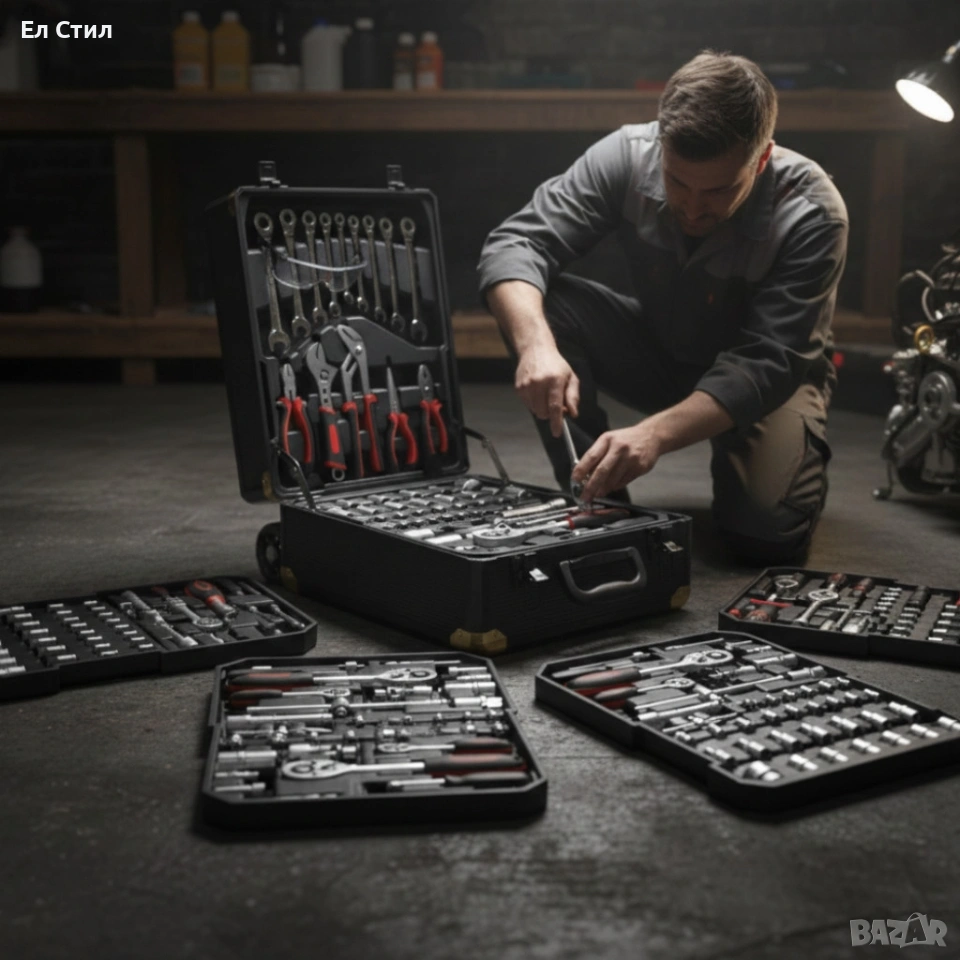 Куфар с инструменти– 599 части, професионален алуминиев тролей комплект → Обява 53573692