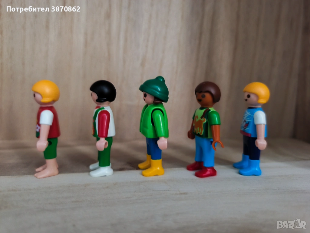 Продавам пет фигурки на деца Playmobil Geobra (1992 /1995) в страхотно състояние - тялото, ръцете и краката са стегнати. Фигурките стоят добре изправени.