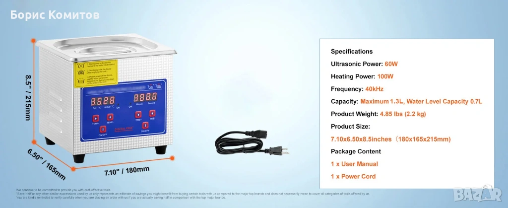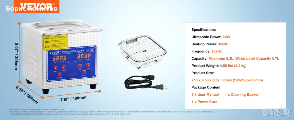 Качество, на което можете да се доверите: Проектиран с резервоар от първокласна неръждаема стомана SUS304, звуковият почистващ препарат сигурно държи и почиства различни ценни предмети като бижута, очила и часовници. Вниманието към детайла гарантира, че всеки предмет получава щателно почистване. Максимален размер на продукта, който може да се пере: 4,3 x 3,9 x 2,2 инча / 110 x 100 x 55 мм