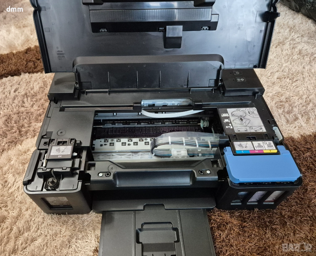 Принтерът се продава с оригиналния кашон и захранващ кабел. Като бонус подарявам едно чисто ново чено мастило и Cyan на половина.