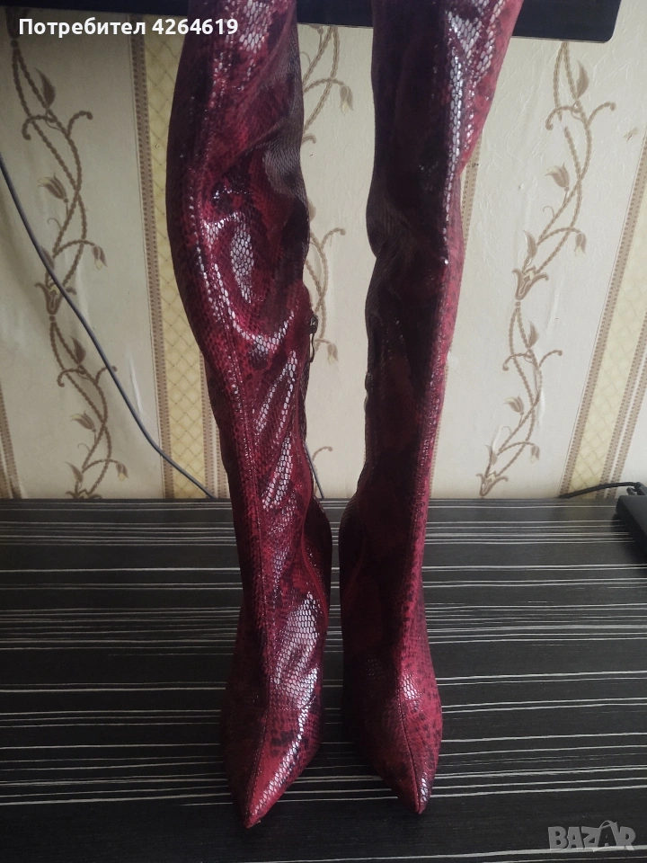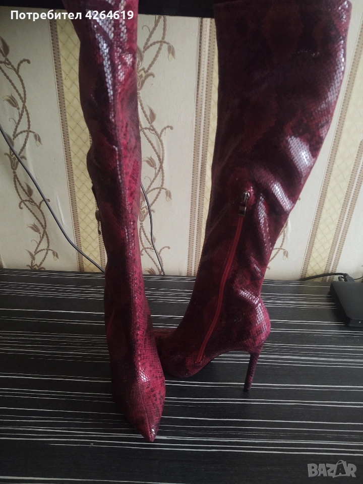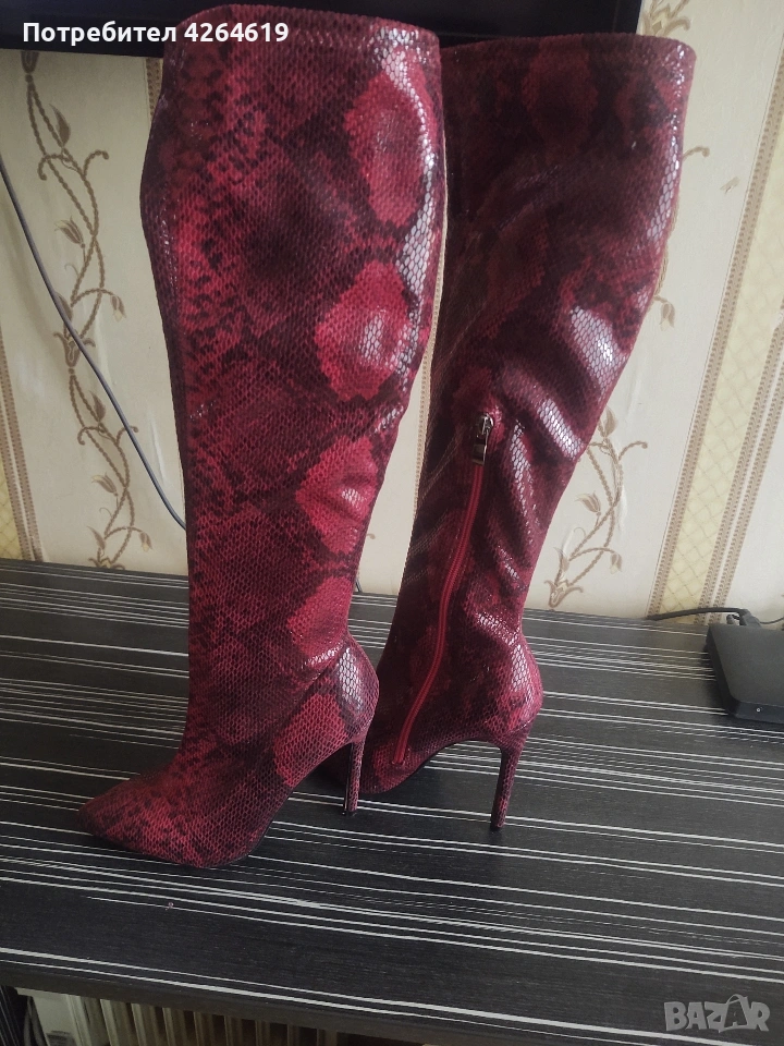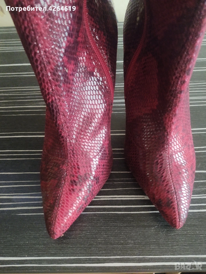 ПРИДАВАМ , ЕЛЕГАНТНИ ЧЕРВЕНИ ВИСОКИ БОТУШИ . ИНТЕРЕСНИ КАТО ЗМИЙСКА КОЖА → Обява 53573885