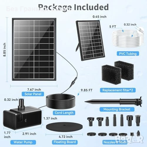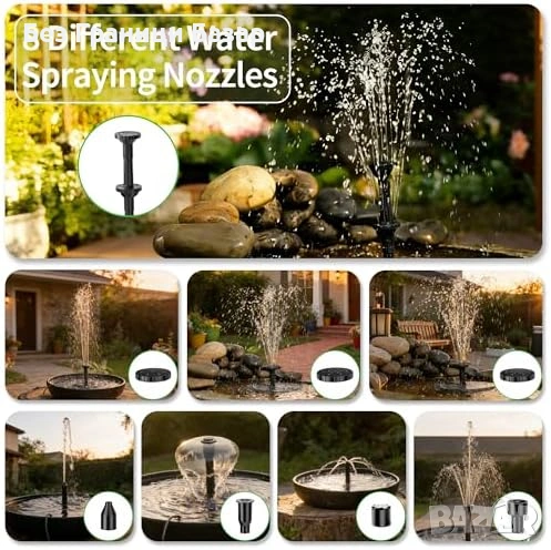 Нова Соларна водна помпа за градина/езерце, 360° стойка, 8 режима пръскане