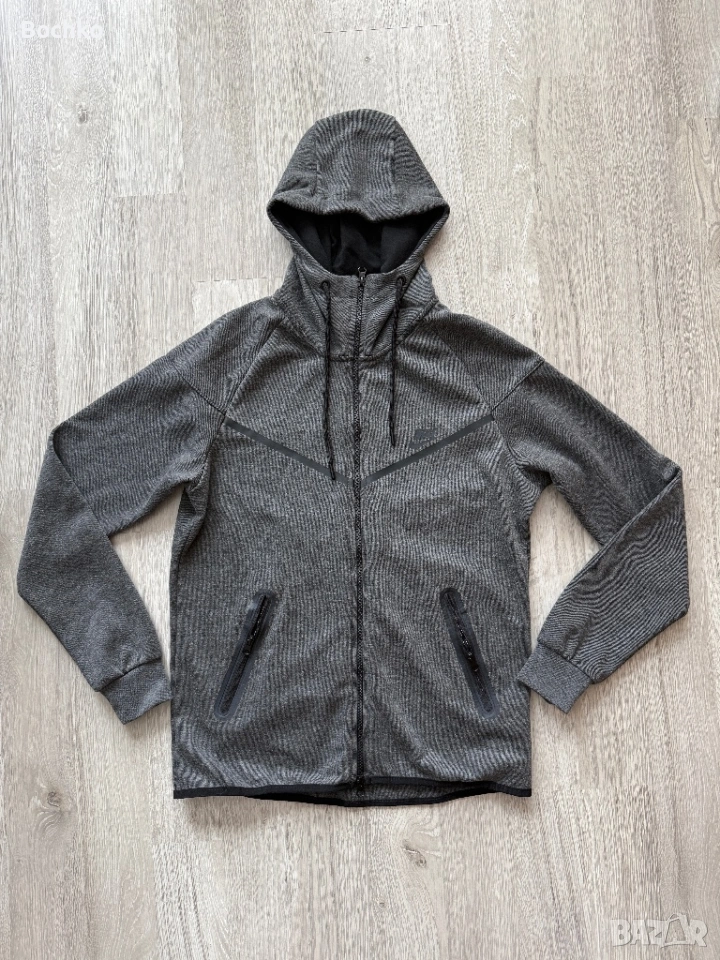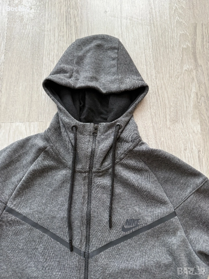 Продавам оригинален мъжки суитчър Nike Tech Fleece в тъмносив цвят.