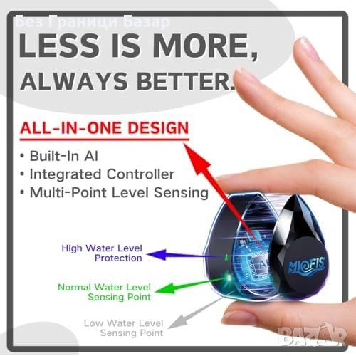 Тройна защита: висок/нисък воден лимит, защита от работа на сухо (dry-run), anti-siphon дизайн