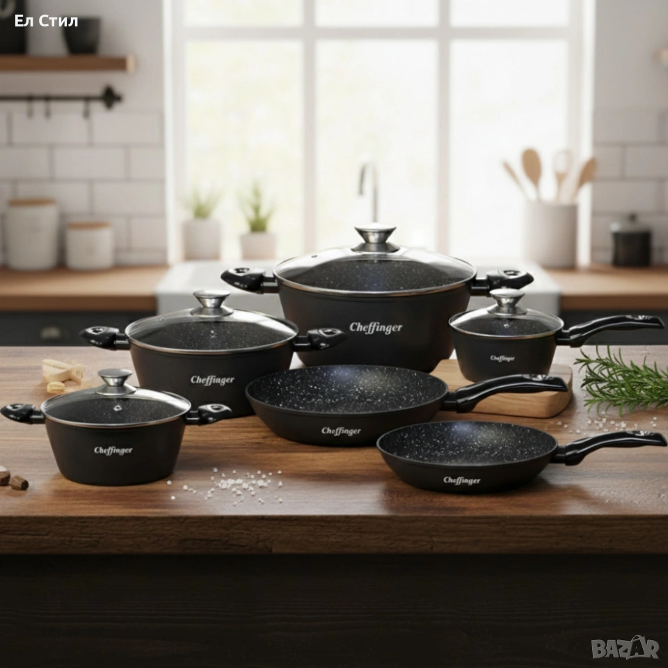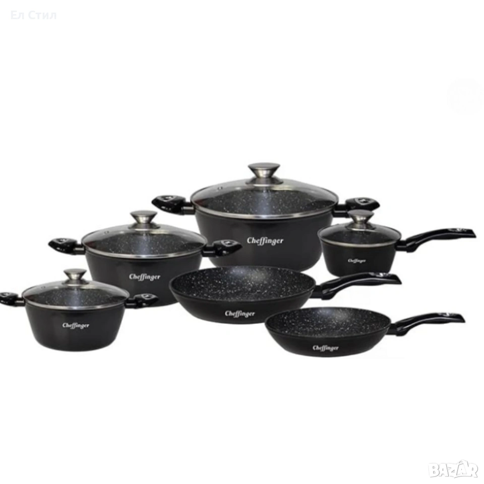 Комплект съдове за готвене от 10 части–с мраморно покритие за всички видове котлони
