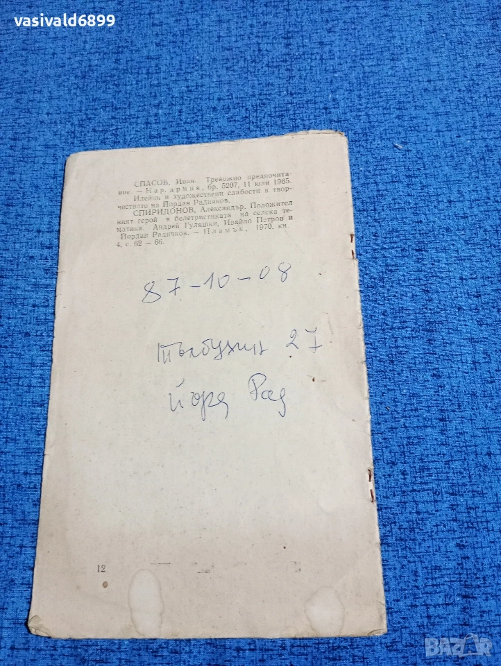 Йордан Радичков - Библиографска справка → Обява 53574066