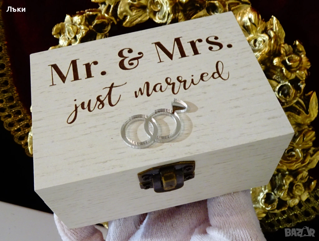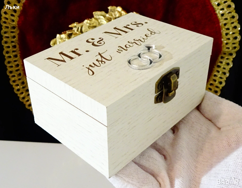 дърво,надписана с лазерно гравиран текст „Господин и Госпожа младоженци.”Има механична