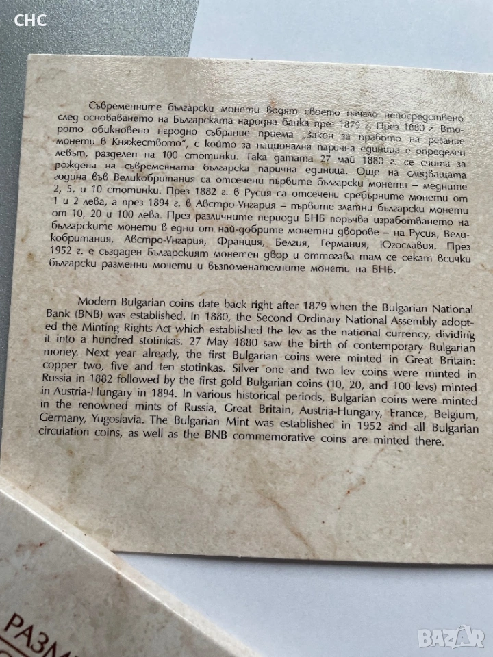 Оригинален сет на Българска народна банка с български монети.