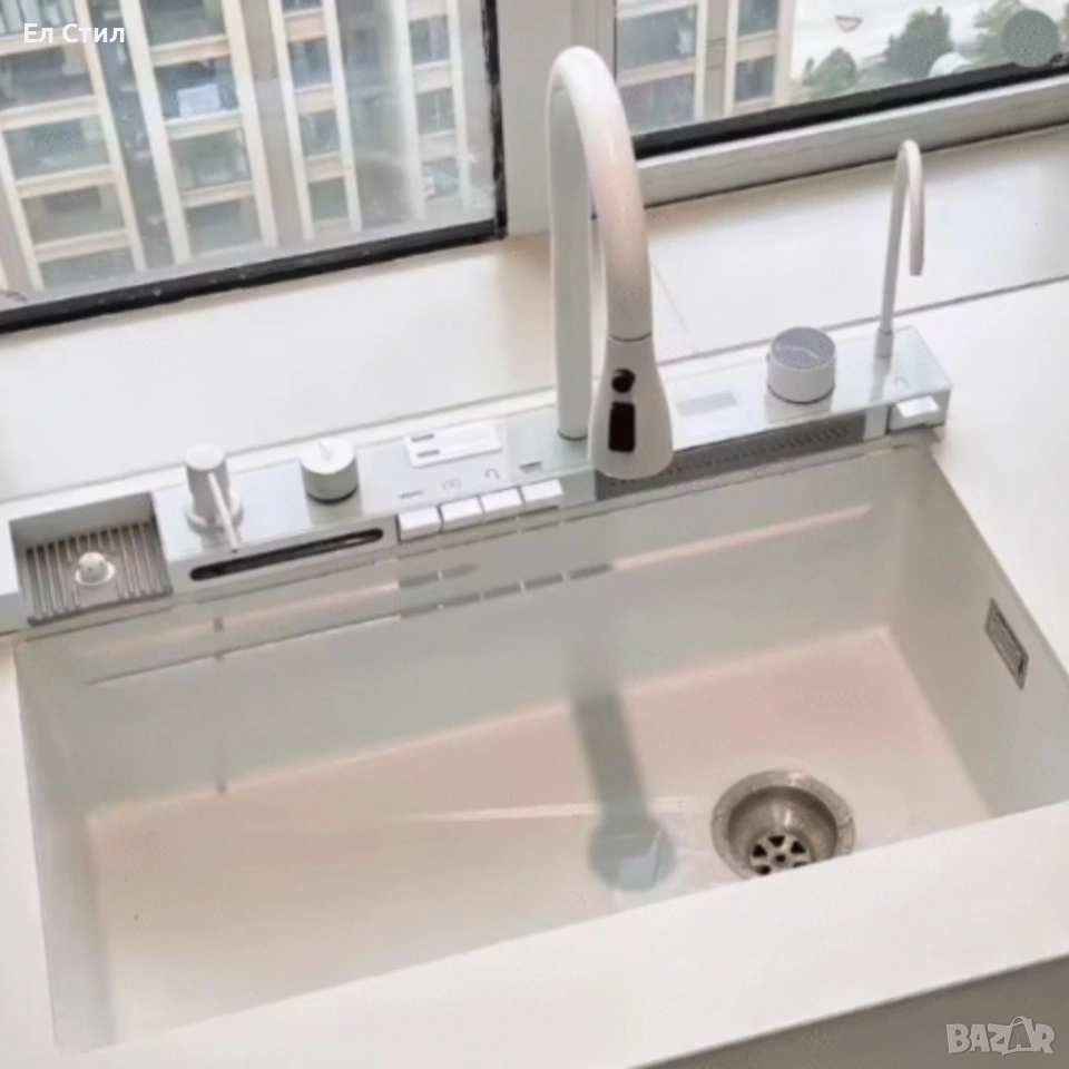 Умна кухненска мивка с изтеглящ се кран – LED дисплей, водопад, филтрирана вода