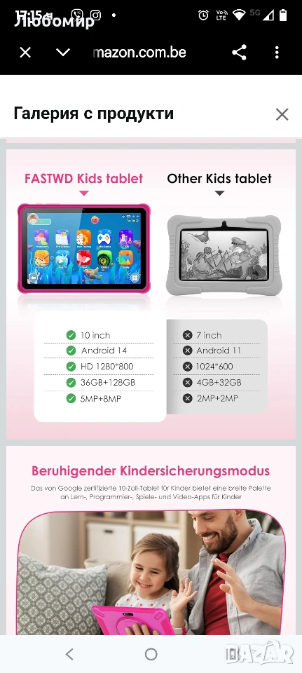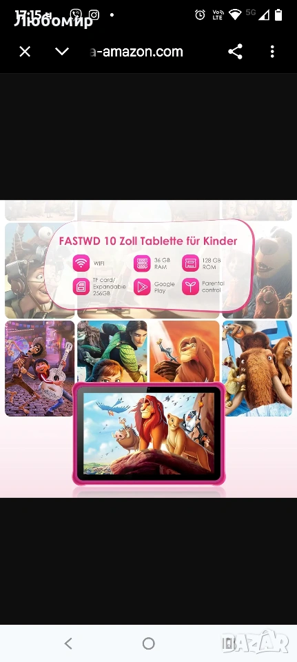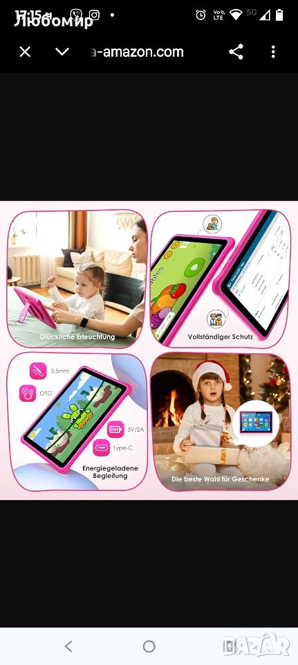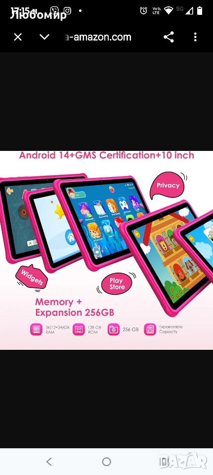 Мострен стоял на витрина таблет с Android 14, 10-инчов, 36GB RAM + 128GB ROM (разширяема SD), 1280*800 IPS екран, 5G WiFi, Bluetooth 5.0, игри, безопасност на децата, образователен таблет (розов).