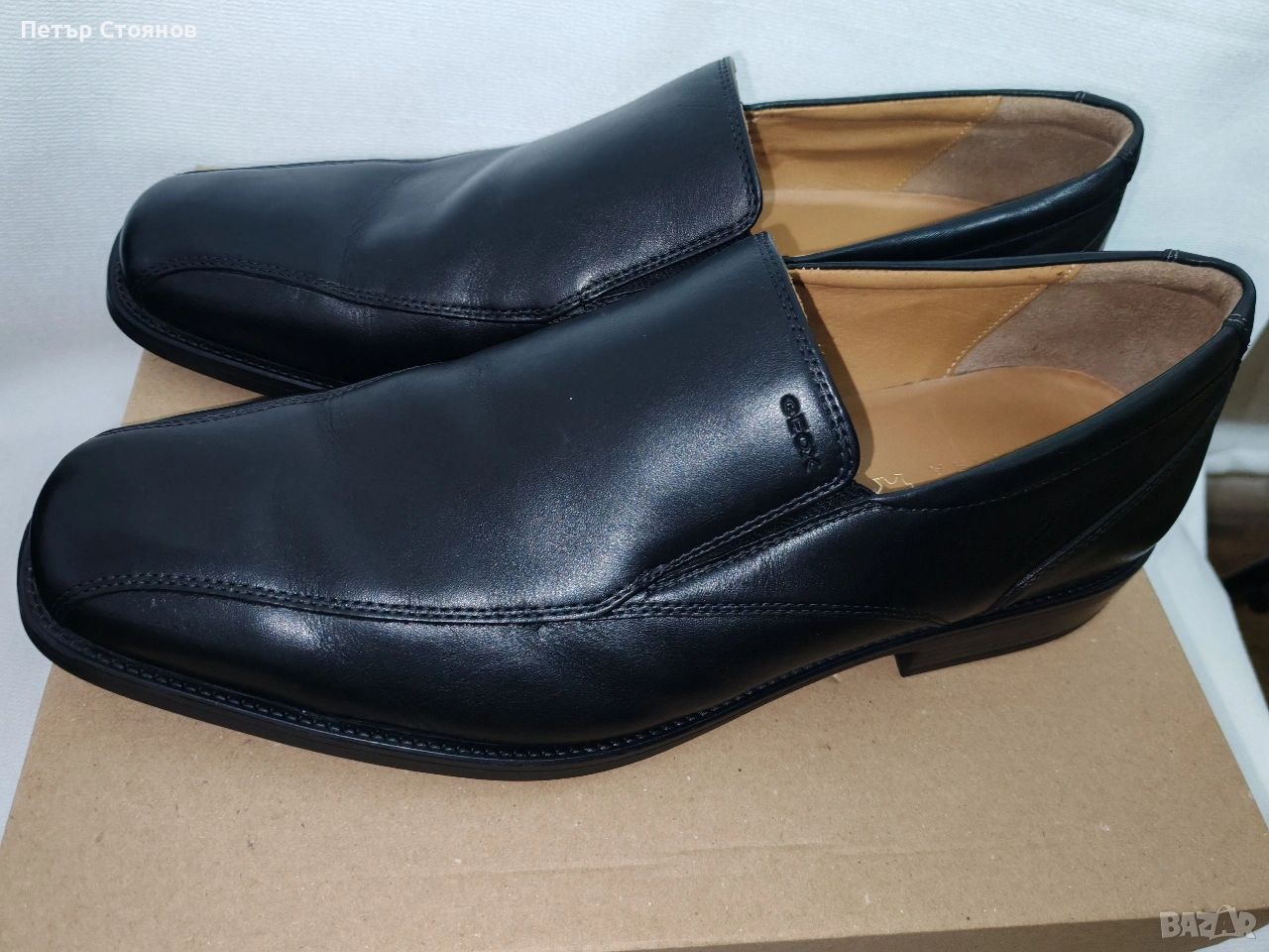 Предлагам чудесни, стилни и удобни мъжки обувки на марката Geox. Обувките са купувани през миналата година на разпродажба за 65.99 евро. носени са 3 или 4 пъти и са като нови, нямат никакви забележки. Изработени са от черна естествена кожа, хастарът и стелката също са от естествена кожа. Подметката е от мек и лек полиуретан, нямат връзки, а ластична материя при езика. Дължината на стелката е 30 см, височината на тока е 2.5 см. Изпращам с избран от купувача куриер и възможност за преглед и тест.