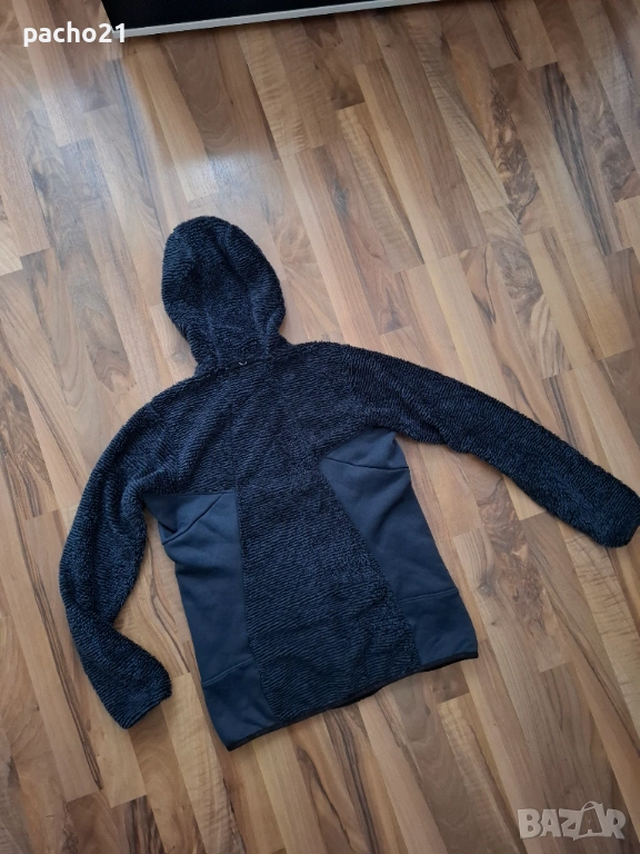 Дамски мек, топъл и технологичен междинен слой с качулка от четкано кадифено поларно яке за алпийски преходи и дейности в студено време.Размер Л/женско/,ширина-51см,дължина-66см.