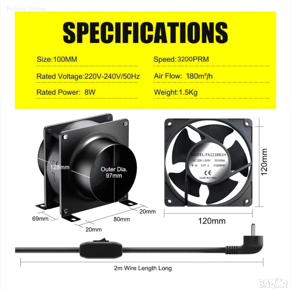 * 1 брой осов канален вентилатор със захранващ кабел