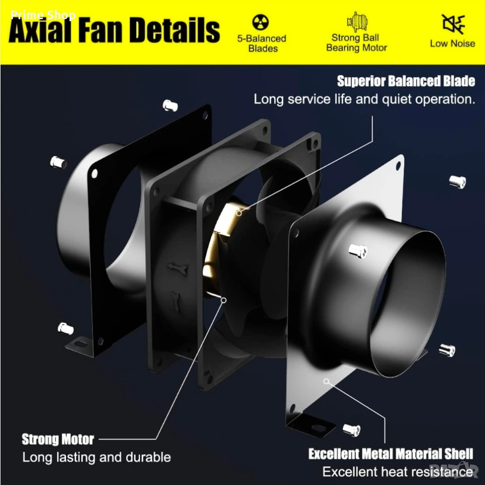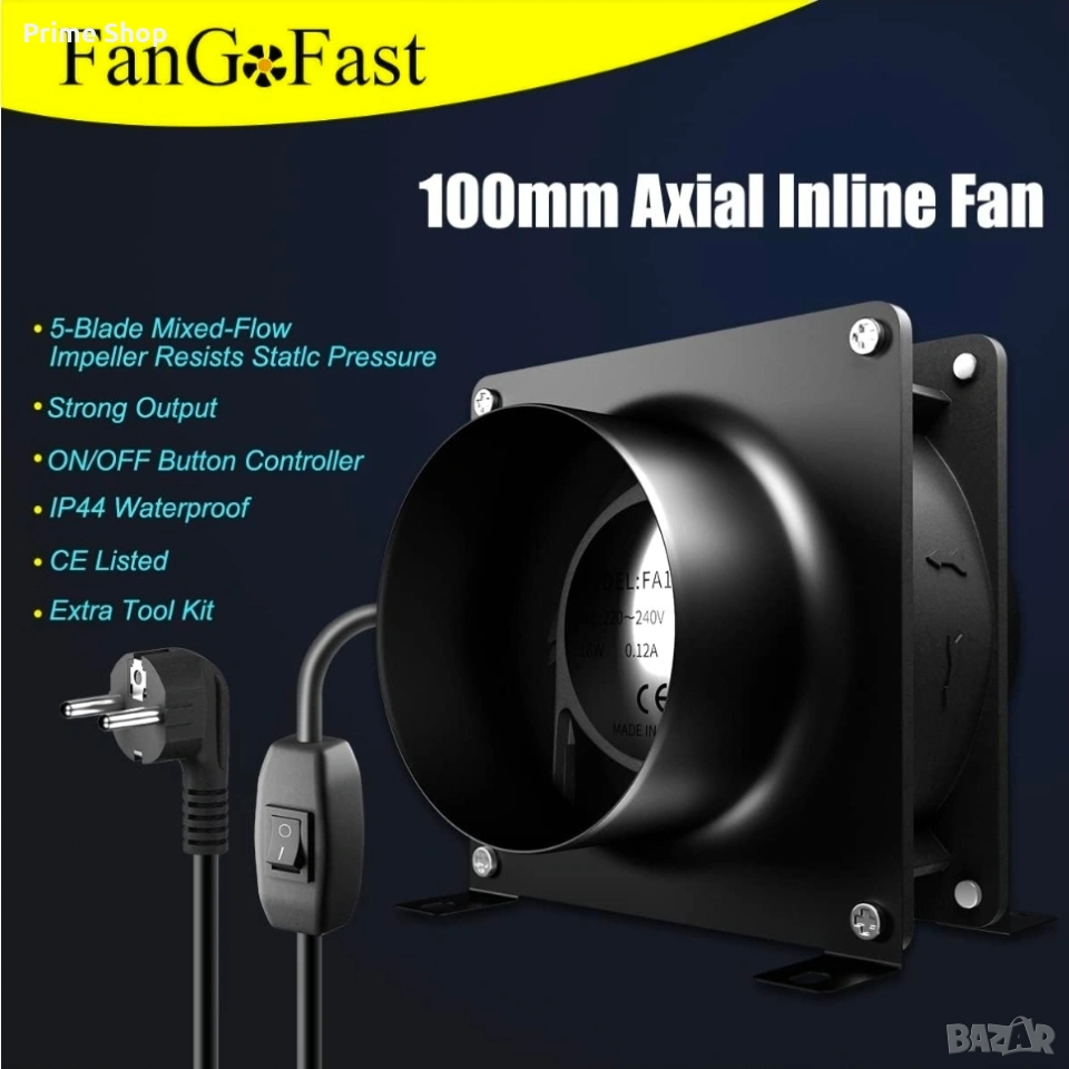 Представеният продукт е високоефективен осов канален вентилатор FanGoFast с диаметър 100 мм, предназначен за изсмукване на въздух, отвеждане на топлина и влага, както и за циркулация на свеж въздух. Устройството се отличава със здрав метален корпус с отлична топлоустойчивост и издръжлив мотор със сачмени лагери, осигуряващ дълъг експлоатационен живот при ниски нива на шум. Вентилаторът е снабден с 5-лопаткова перка за оптимизиран въздушен поток, устойчивост на статично налягане и е подходящ за стенен монтаж в разнообразни закрити помещения като офиси, гаражи, работилници и оранжерии.